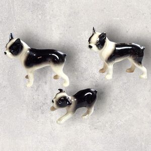 Hagen-Renaker Boston Terrier Dog Figurines Family Set of 3 Vintage Miniatures