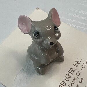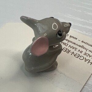 Adorable vintage Hagen-Renaker ceramic figurine affectionately known as “Mama Mouse.” Handcrafted in San Dimas, California, this sweet piece features soft gray tones, pink inner ears, and a gentle, expressive face, a must-have for any miniature collection.
