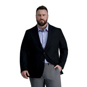 Elevate your style with the Haggar® The Active Series™ Classic Fit B&T Blazer. Available in Big & Tall sizes, this blazer boasts stretch gabardine fabric that ensures both flexibility and enduring elegance. The Classic Fit silhouette, featuring a 2-button closure and notched lapel, exudes a refined charm perfect for any occasion. Stay on the move with ease, thanks to the innovative Motion Panels, while the blazer's functionality is heightened by details like a Zip tech Pocket, Credit Card Pocket, and Patch Pocket with Pen Pocket. With flap pockets, side vents, and a split interior, this blazer is meticulously crafted for those who appreciate both style and utility.