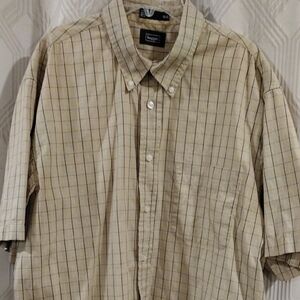 Haggar Beige Striped Button Down Shirt