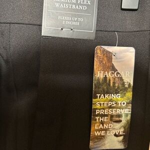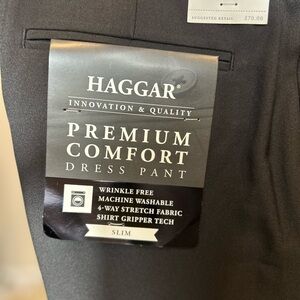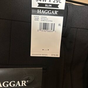 These black dress pants by Haggar feature a classic straight-leg design, perfect for formal occasions. Made from a premium fabric, they offer a refined and sophisticated look. Ideal for enhancing your professional wardrobe with timeless elegance.