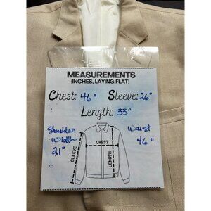 Measurements: Chest: 46", Sleeve: 26", Length: 33", Shoulder Width: 21", Waist: 46"