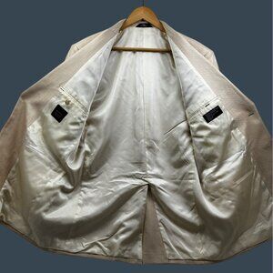 Haggar Black Label Blazer Mens 44L Beige 100% Silk Herringbone Sport Coat Luxury