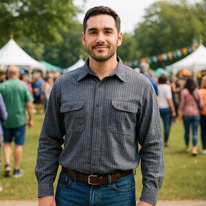 Haggar Black Label Men's Large Gray Checkered Casual Shirt