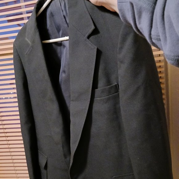 A black suit jacket. In good condition. I don't have a lot of places to hang this up or take quality pics but it's in good condition.