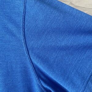 Experience timeless style with this Haggar polo shirt in a rich blue hue. Its classic design features a traditional collar and short sleeves, making it a versatile addition to any wardrobe. Crafted from a comfortable knit fabric, this shirt is perfect for casual outings. The true blue is most accidentally shown in the third photo.