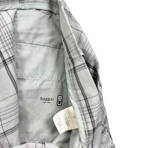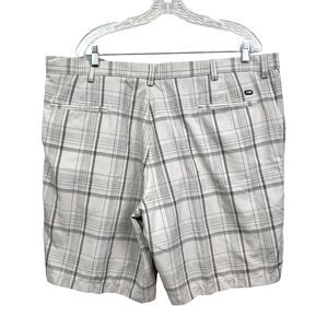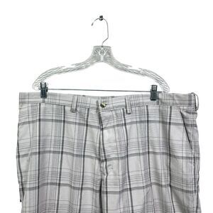 Haggar C18 Mens Chino Shorts Plaid Flat Front Slash Pockets Zip Fly Gray Sz W42