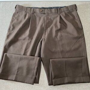 Haggar CLASSIC FIT Dress Pants Men 40 x 31 High Rise Brown Pleated Office