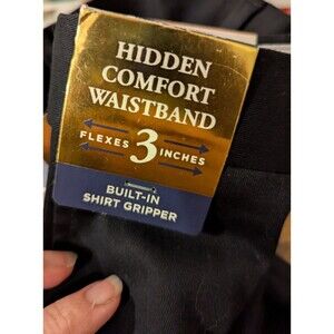 - Features: Hidden Comfort Waistband (flexes 3"), Built-in Shirt Gripper, Wrinkle Free, Machine Washable