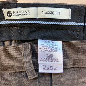 Haggar Classic Fit Brown Pinwale Corduroy Flat Front Pants Sz 34