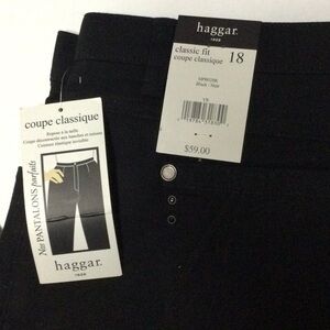 Haggar Classic Fit Sits at Waist Hidden Elastic Waistband Black Jeans Sz 18 NEW
