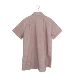 Haggar Clothing Men's Button Down Shirt, Short Sleeve Button Down with Rust Red Geometric Pattern. Retro Preppy Golf Polo Shirt