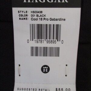 Haggar Cool 18 Pro Mens Flat Front Black Expandable Waistband (+3") Golf Short Pant. Size 32W, Inseam 9.5", Rise 12". 100% Polyester in Black. New with Tags, original M.S.R.P. $55.00, suitable for gifting.