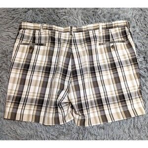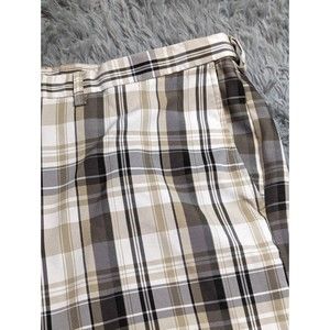 Haggar Cool 18 Pro Golf Shorts Sz 44 Tan Gray Black Check Polyester Lightweight