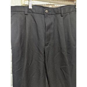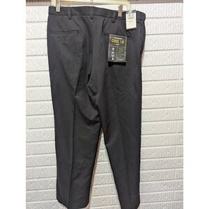 These Haggar Cool men's slacks feature a sleek black solid design for a polished look. With a mid-rise fit and ankle-length cut, they offer modern style and comfort. Sized at 36 x 30, they provide a tailored yet relaxed fit. The breathable fabric ensures all-day wearability. Brand new with tags, perfect for work or casual occasions.