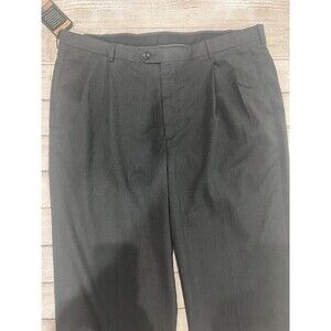Haggar Dress Pants Mens 40x32 Black Grey Classic Fit Pleated Cuffed NWT