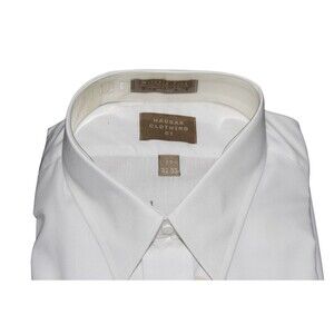 Haggar wrinkle Free White Dress Shirt. Button-up shirt in size 17 32/33. Long sleeves and a spread collar. Made from a blend of 55% cotton and 45% polyester. Machine washable.