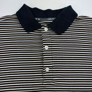 Haggar Golf Cool 18 Polo Shirt Men's Medium Black Tan White Striped Short Sleeve