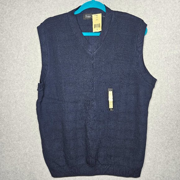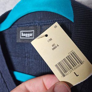 Elevate your style on the golf course with this classic Haggar sweater vest in a navy blue pattern. Made from a soft and breathable blend of cotton, wool, and cotton blend, this vest is perfect for all seasons and activities, whether you're hitting the links or keeping it casual. The tight-knit fabric type and V-neckline give this vest a timeless look, while the logo accents add a touch of personality. This sweater vest comes in a size M and fits true to size, making it a great addition to any wardrobe. It's perfect for layering over a button-down shirt or wearing on its own, and its solid pattern and gray color make it versatile enough to pair with anything. Don't miss out on the chance to add this Haggar sweater vest to your collection!