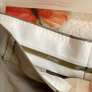 These Haggar dress pants in a sophisticated green hue feature a tailored fit with front pleats for a polished look. Crafted from a smooth, lightweight fabric, they offer comfort and style for formal occasions. The full-length design ensures a classic silhouette, perfect for elevating your wardrobe. 📌SIZE 33 X30