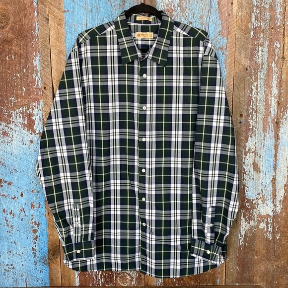 Haggar Green Plaid Long Sleeve Button Down Shirt