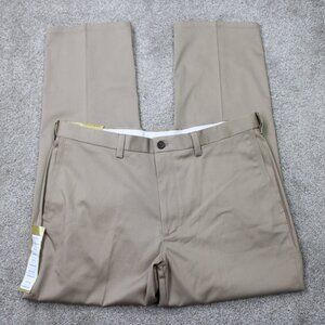 Haggar H26 Pants NWT Mens 38x32 Beige Stretch Khaki Classic Fit No Iron Creased