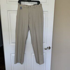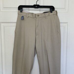 Haggar Men Iron Free Khaki Classic Fit Expandable Waist 32x32 Beige Pants