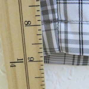Pre-Owned Condition! 100% Polyester. Handsome Black, White & Gray Plaid Multipocketed Flat Front Shorts with an Expandable Waist Band. Quality Made!