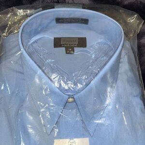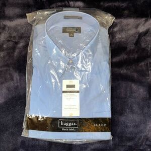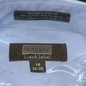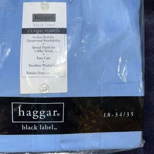 Haggar Men’s 18 34/34 Classic Poplin Button Down Dress Shirt Blue Long Sleeve
