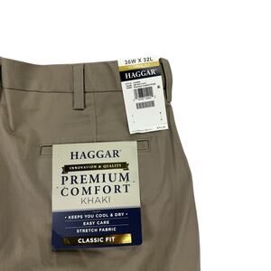 Haggar Mens 2-Way Stretch Premium Comfort Classic Fit Dress Pants Khaki 36x32