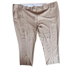 Haggar, Men's 60 x 30, Beige/ Brown-- Hook& Loop/ Button/ Zipper Closure, 4 Functional Pockets, Flat Front, Classic Fit, Slacks Dress Pants