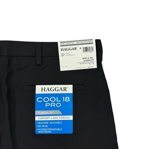 Haggar Mens Big & Tall Cool 18 Pro Classic Fit Stretch Dress Pants Black 46x30