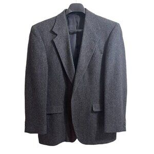 Haggar Men's Blazer Jacket 44L Charcoal Gray Wool Herringbone Made in USA