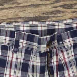 Haggar Mens Cotton Elastic Waist Casual Shorts Blue Red Plaid 42