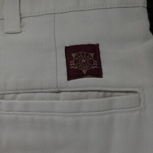 Crafted by Haggar, these beige men's dress pants in size 40 are made from 100% cotton, featuring a button zip closure and pockets. The solid pattern lends a classy, timeless appeal.
