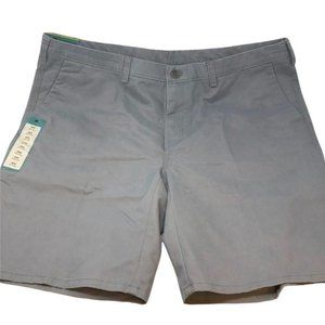 Haggar Men’s Eco Straight Fit Flex Flat Front Twill Shorts in grey in size 44W, with back phone pocket, new with tags!