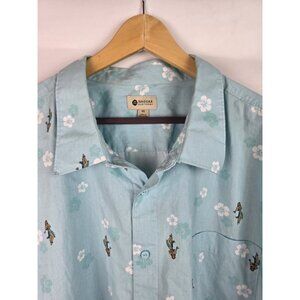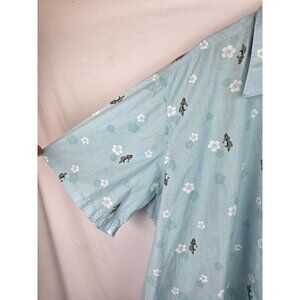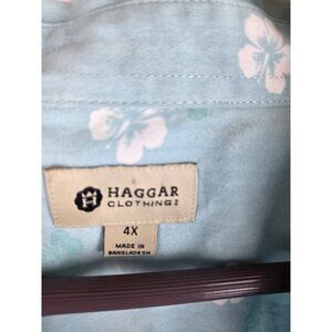 Haggar Mens Hawaiian Shirt Size 4X Blue Luau Floral Short Sleeve Button Down Top