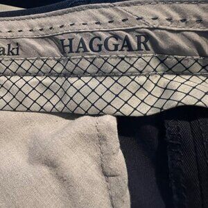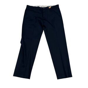 Haggar Men's Iron-Free Premium Khaki Pants 36x30 Navy Cotton Blend Flat-Front
