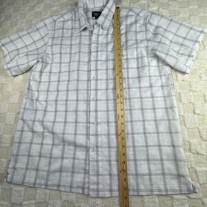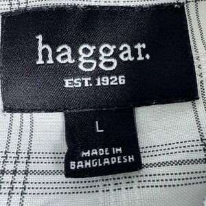 Haggar Men's Large Short Sleeve White Plaid Button Shirt with Pocket