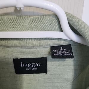 Stylish Haggar polo in a light green shade. Perfect for casual outings. Comfortable and versatile.