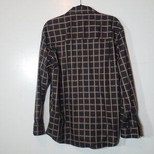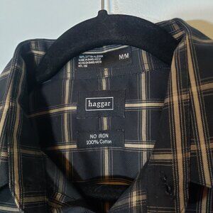 Haggar Men’s No Iron Black Tan Checkered button-down dress casual shirt size M