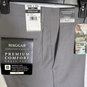 Haggar Men's Premium Comfort Slim-Fit Flat-Front Dress Pants, Silver 30x32 $70