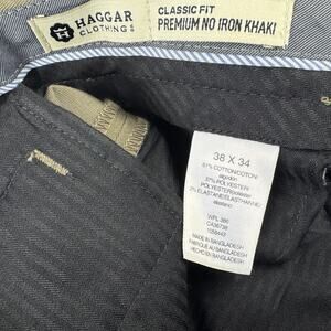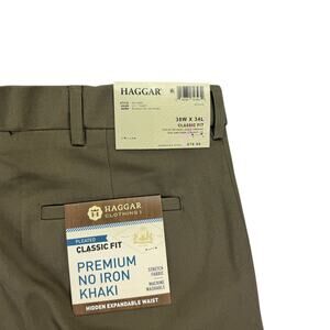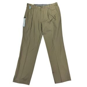 Haggar Mens Premium No Iron Classic Fit Pleated Stretch Dress Pants Brown 38x34