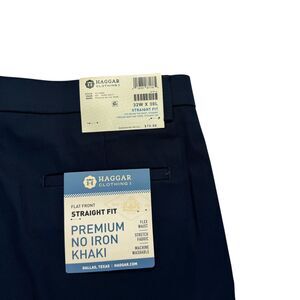 Haggar Mens Premium No Iron Khaki Straght Fit Stretch Dress Pants Navy 32x30