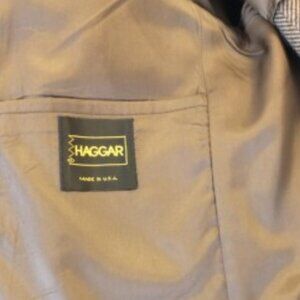 This preowned Haggar sport coat is in excellent condition. It would be a stylish addition to any wardrobe. It is size 44 regular, dry clean only.