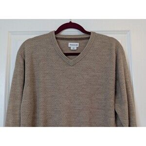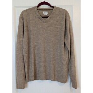 Haggar Men's Tan V-Neck Classic Knit Pullover Casual Sweater Size Large