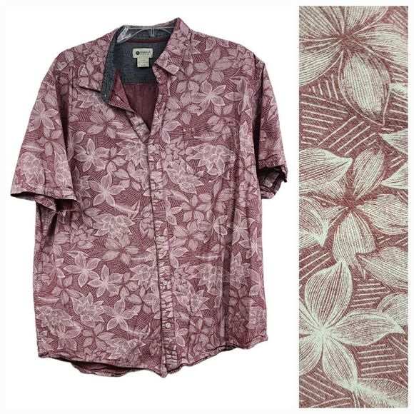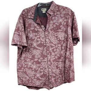 Haggar Men's XL Tropical Red Short Sleeve Camp Casual Button Down Shirt Hawaiian