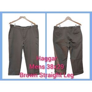 Haggar Men's Size 38x25 (Tag 38x29) Brown Straight Leg Casual Pants.