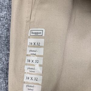 HAGGAR PANTS MENS 38 CLASSIC FIT PLEATED BELTED STRAIGHT FLAT FRONT NON IRON NEW