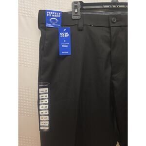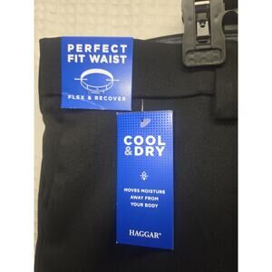 Haggar Perfect Fit Waist Pants Mens Size 38x29 Black Iron Free Straight Fit...
